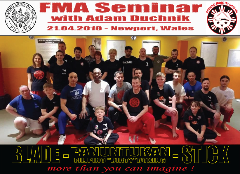 W kwietniu br. delegacja Filipino Arnis de Mano Poland przebywała w Wielkiej Brytanii, gdzie nasz Chief Instructor Piotr Adam Duchnik przeprowadził seminaria szkoleniowe w Newport i Cardiff. W zajęciach asystowali Guro Krzysztof Herman i Guro Małgorzata Kryst.