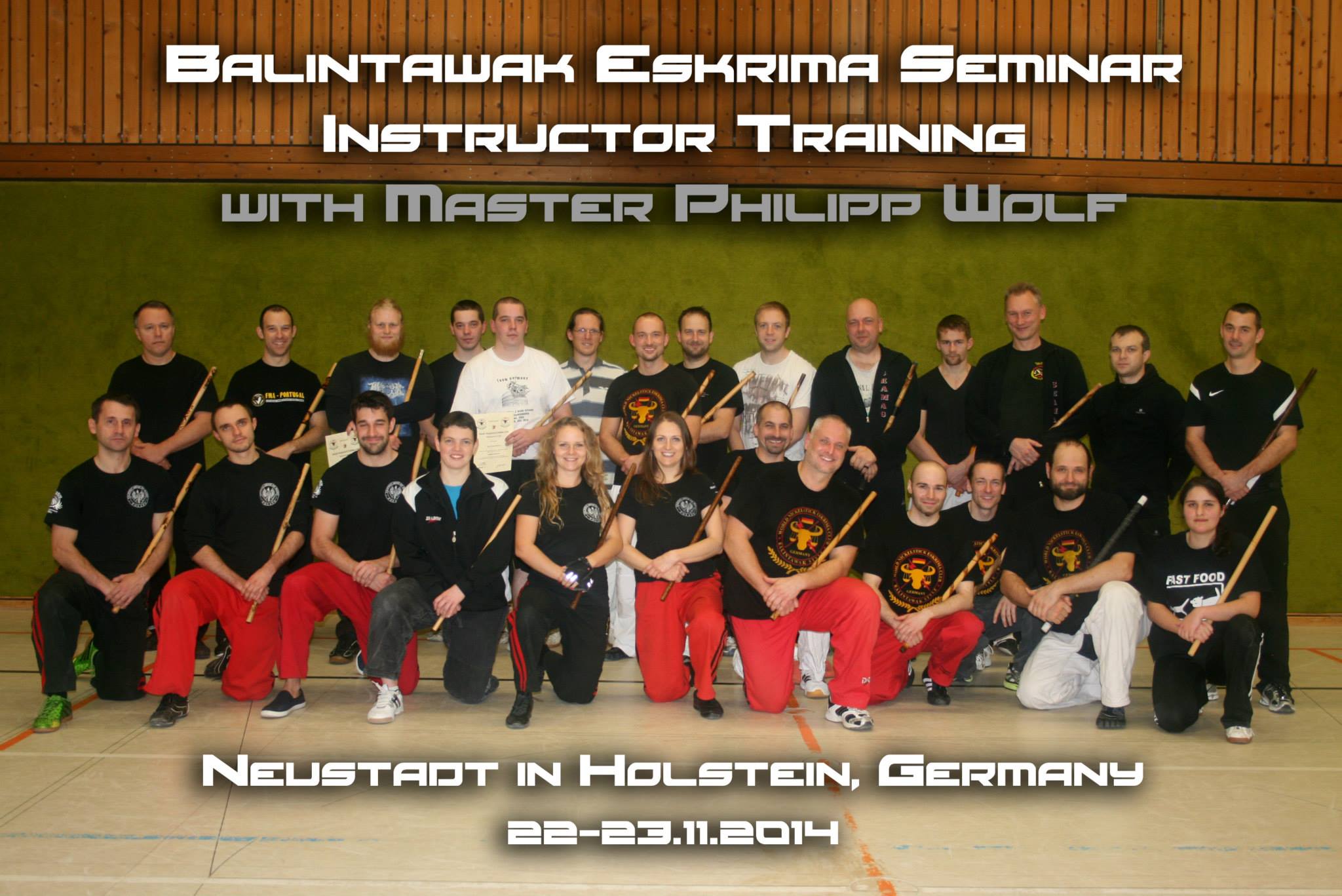 W dniach 22 – 23 listopada 2014r. w Neustadt in Holstein (Niemcy) odbyło się seminarium szkoleniowe Balintawak, w którym udział wzięło ok. 40 osób przybyłych ze Szwajcarii, Portugalii, Rumunii, Walii, Polski i oczywiście gospodarzy – Niemiec. Poziom uczestników był bardzo zróżnicowany, od zupełnie początkujących do już doświadczonych instruktorów Balintawak.